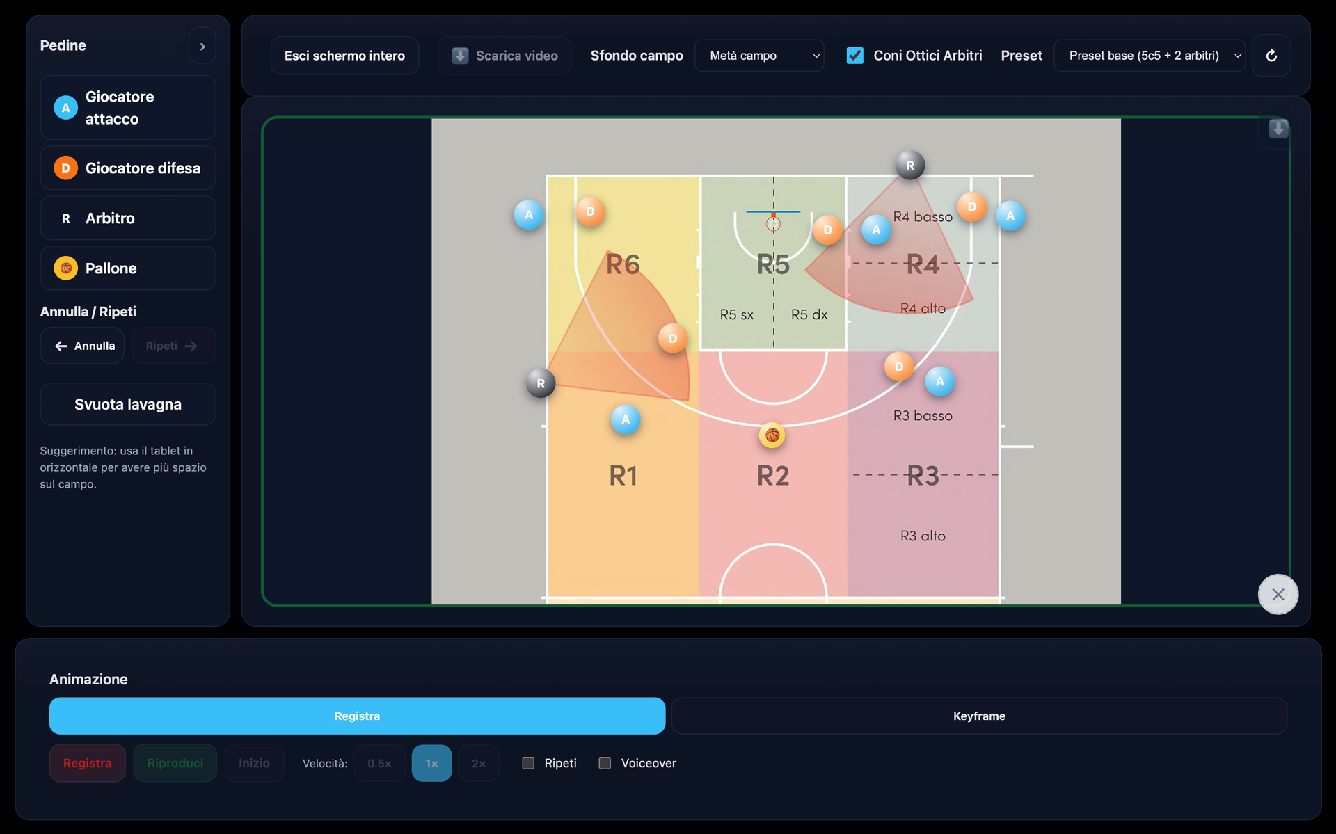 Visualizza, spiega e chiarisci ogni situazione di gioco. Con la Lavagna puoi rappresentare azioni, movimenti, spaziature e posizionamenti in modo semplice e immediato, rendendo più chiara l’analisi tecnica e la spiegazione delle decisioni arbitrali.